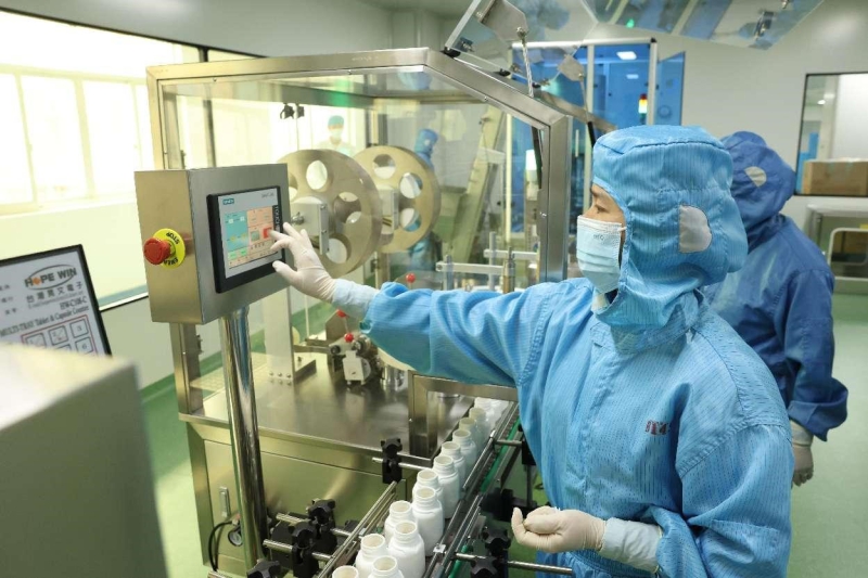 Technicians work on an intelligent production line of a biotech company in Ningde, southeast China's Fujian province. (People's Daily Online/Wang Wangwang)