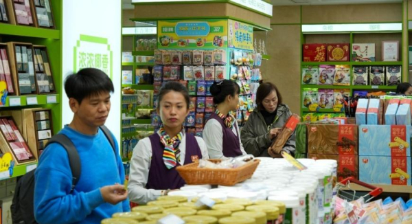Shoppers pick out CNY treats at the Chunguang Food Haikou Specialty Flagship Store. Photo: Cao Zhi