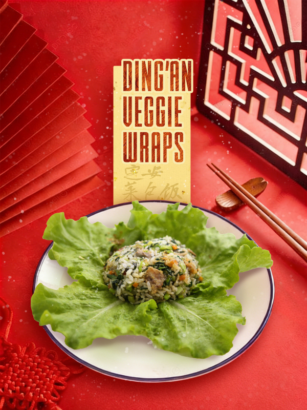 Ding’an veggie wraps symbolize reunion and wealth, and represent completeness. In Ding'an, Hainan, on the third day of the Lunar New Year, people don’t visit each other or exchange New Year's greetings, as is typical in other parts of the country on this day. Instead, every household prays to the God of Wealth, and the whole family sits together to eat veggie wraps to ward off gossip and misfortune.