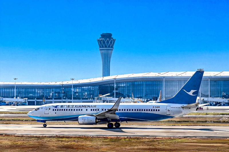 A Xiamen Airlines aircraft takes off from Haikou Meilan International Airport in Haikou, Hainan province, on Jan 10, 2026. [Photo/VCG]