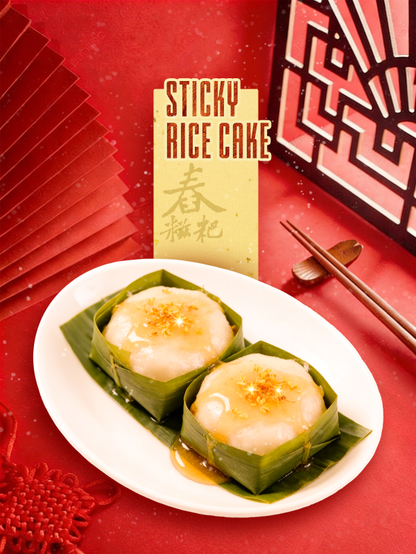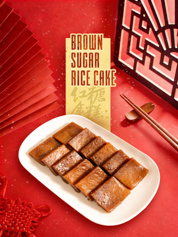 Traditionally, the cakes are made from sticky rice and brown sugar. Freshly steamed cakes are chewy and sweet, like soft pieces of candy. The reddish-brown color is also thought to be lucky.