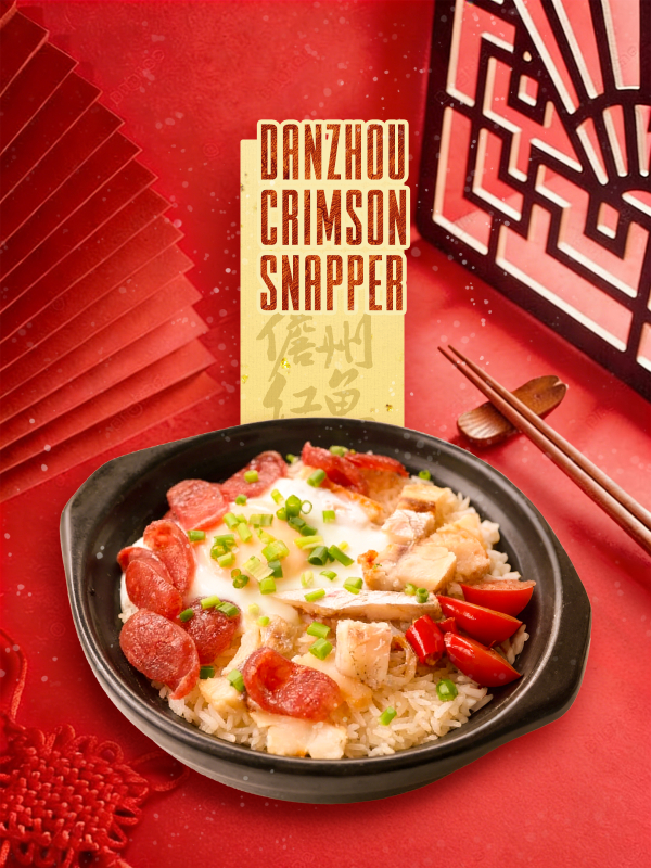 Crimson snapper represents good fortune and prosperity, and has become a symbol of the new year in Danzhou, representing the joyful, lively atmosphere of the city and the desire for family reunions. The fresh-caught fish are sliced, scaled, gutted, and then scored along the grain of the flesh, then marinated with sea salt, rinsed, and hung to air dry in the sun. The dried fish is then combined with a variety of ingredients to create many visually appealing, tasty dishes such as crimson snapper clay pot rice, braised crimson snapper with pork belly, and crimson snapper eggplant casserole.