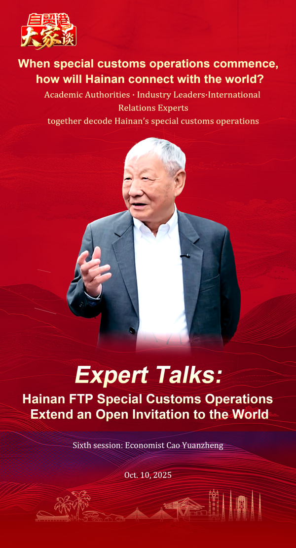 The Hainan Free Trade Port will launch island-wide special customs operations on Dec. 18th. The 6th episode of the Export Talks interview program features a conversation with economist Cao Yuanzheng.